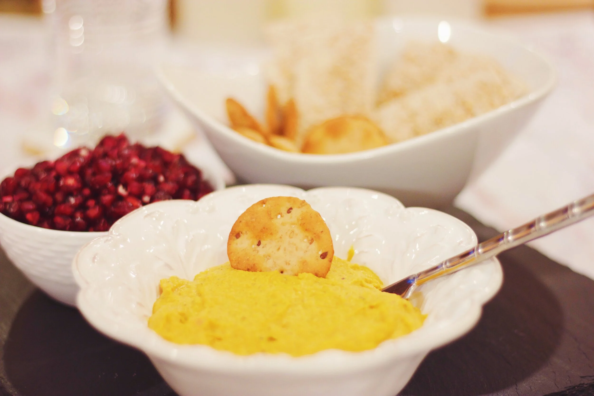 optional - pomegranates seeds on the side to sprinkle over dip or individual crackers
